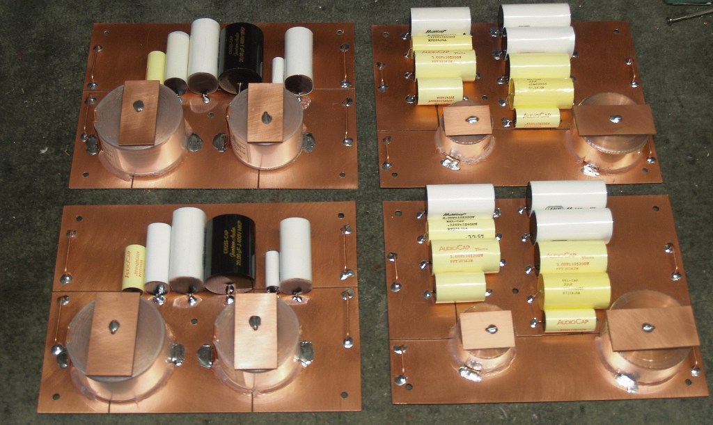 Our crossover design and component parts are also unique in the industry. Crossovers separate the original signal from the amplifier into different groups of specific frequencies. Many speaker companies use a 2nd order crossover (12db/Octave) to send the treble sounds to the tweeter and the bass sounds to the woofer. Choosing an example of a crossover frequency, at 500Hz, the signal to the woofer will be reduced by 12db when the signal reaches 1000Hz, allowing some of the sound energy at 1Khz to emanate from the woofer. This residual energy may cause problems, if your woofer is not designed to play sounds above 500Hz. Therefore, the larger the reduction produced by the crossover, the better.