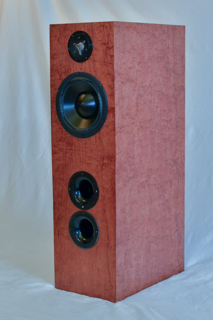 All speakers come with your choice of hardwood veneers sustainably sourced, and hand finished, so that they look as good as they sound. Multiple layers of an oil finish, with a topcoat of buffing oil reveal the natural grain and colour, creating a lustrous glow from the hardwood. You can choose your own veneer from Timberwood Panels™ via the link on our website making your speakers bespoke artwork.